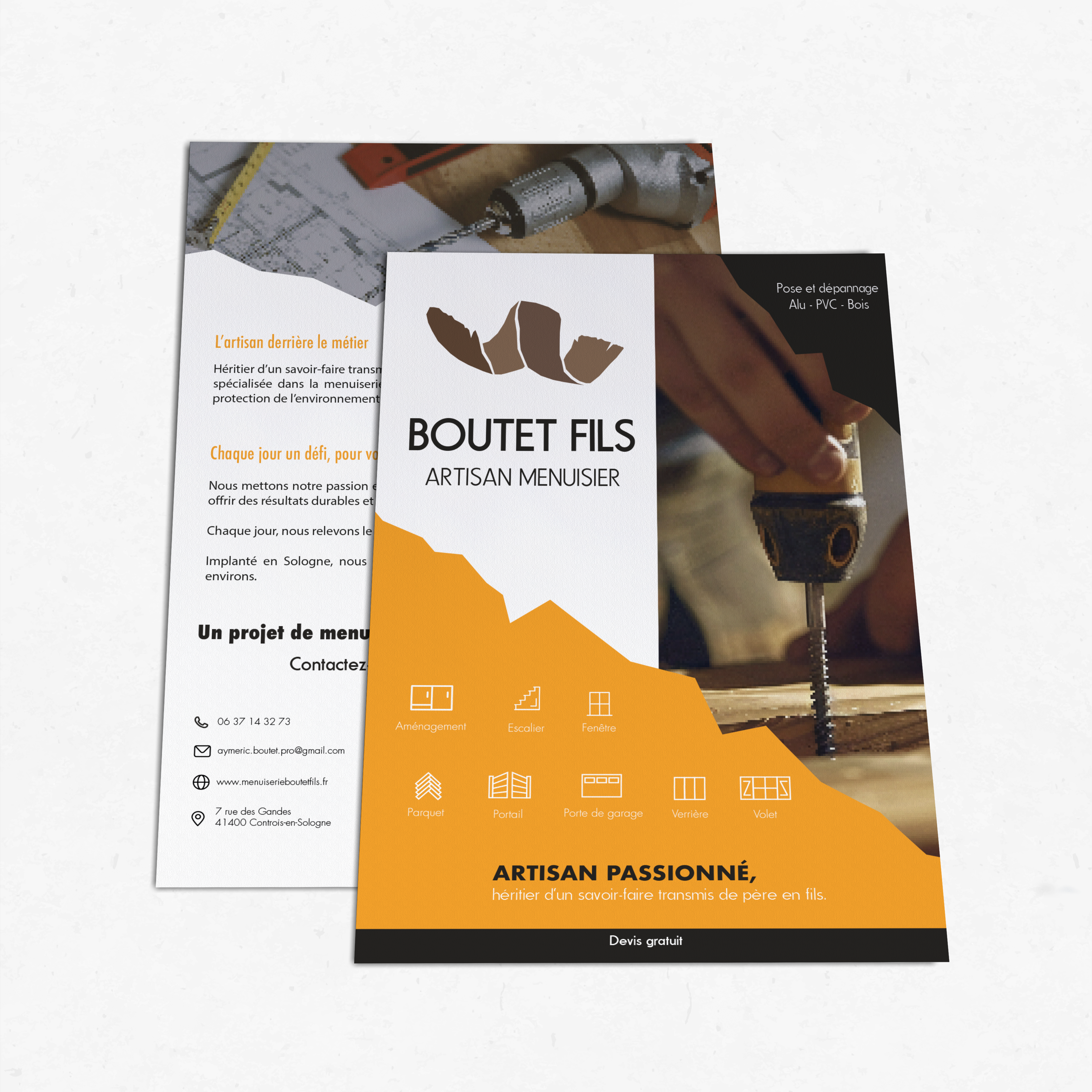 Une stratégie de communication pensée pour maximiser l’impact de l’artisan grâce à des couleurs marquantes et une harmonie graphique efficace.